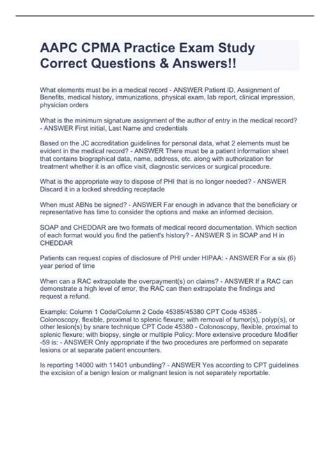BFV - Read AAPC CPMA PRACTICE EXAM AND ANSWER KEY rtf Library Genesis